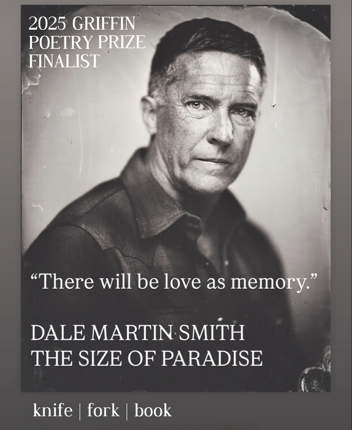 “With a kind of clipped historical shorthand, the use of the fragment in The Size of Paradise becomes a supercharged lyrical force that is also sprung with time. The momentum of this capacious book-length sequence keeps turning outward as it investigates an inward subjectivity, not all together Dale Smith per se, but maybe a collective interiority where we find, “Dead things collect in words.” And more importantly we discover “There will be love as memory.” Dale Smith has written a high-stakes recounting of time and experience expanding the world we live within and that lives within us. This book is out of doors. I love it.”