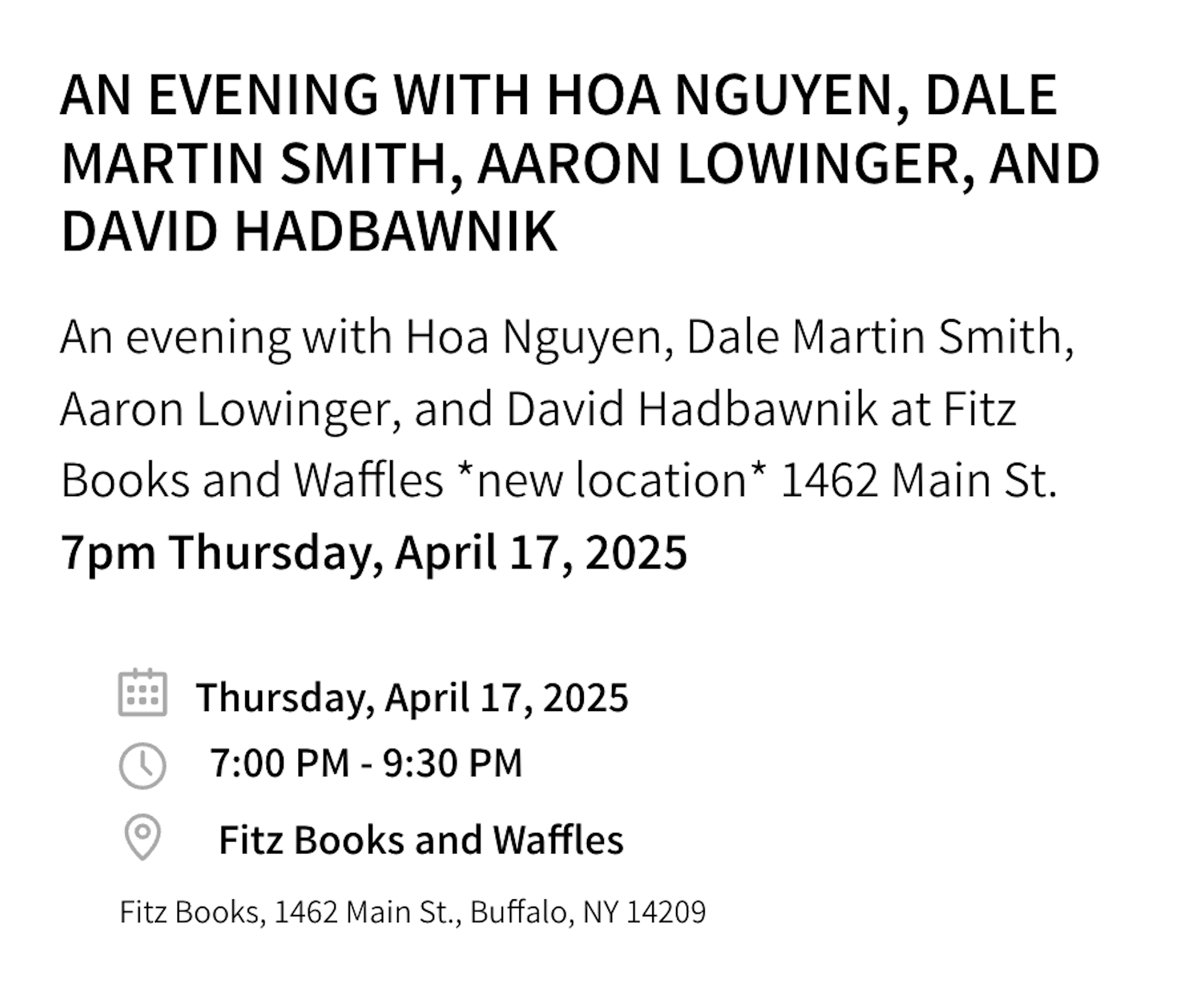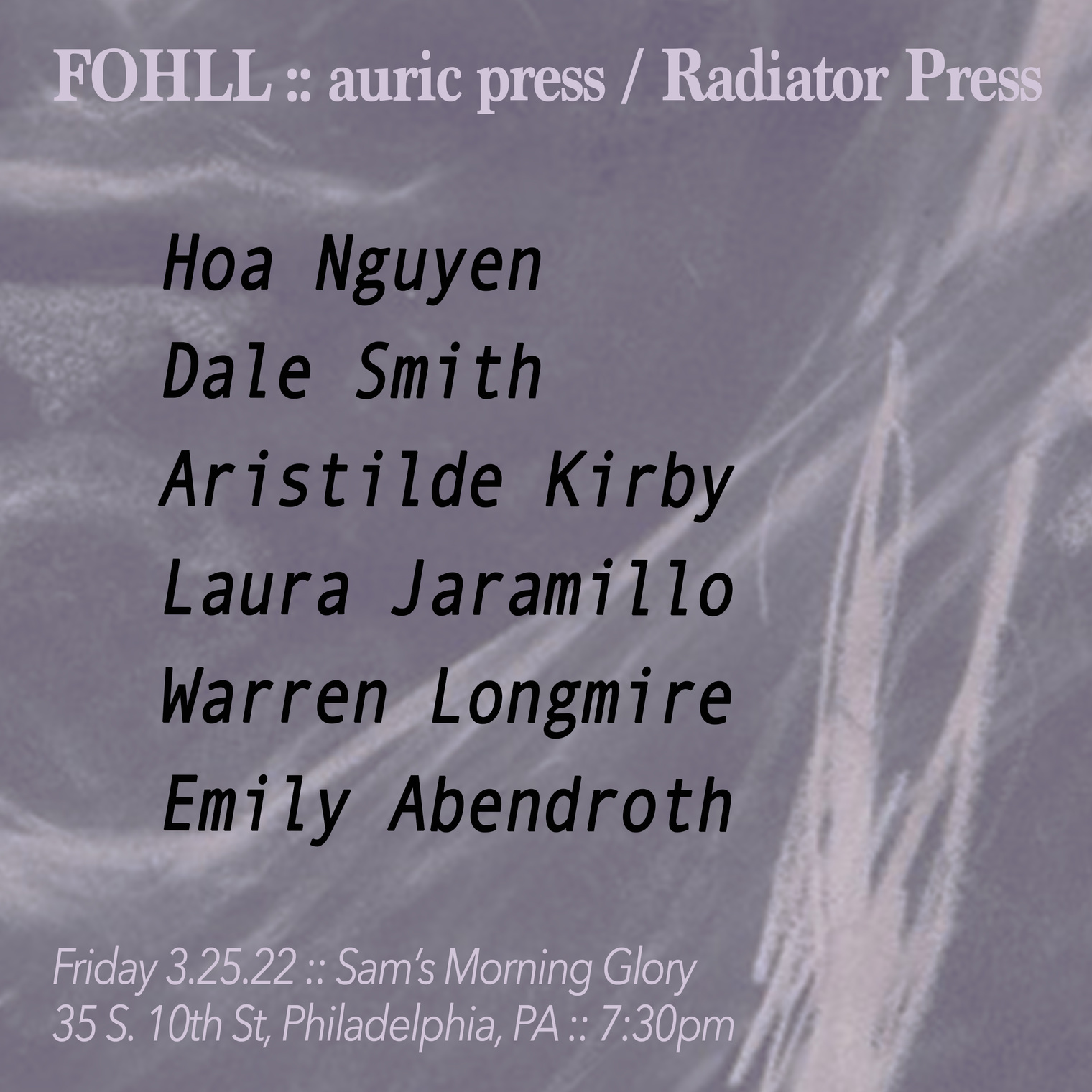 25 MAR 730PM PHILADELPHIA FRANK O’HARA’s LAST LOVER READING SERIES