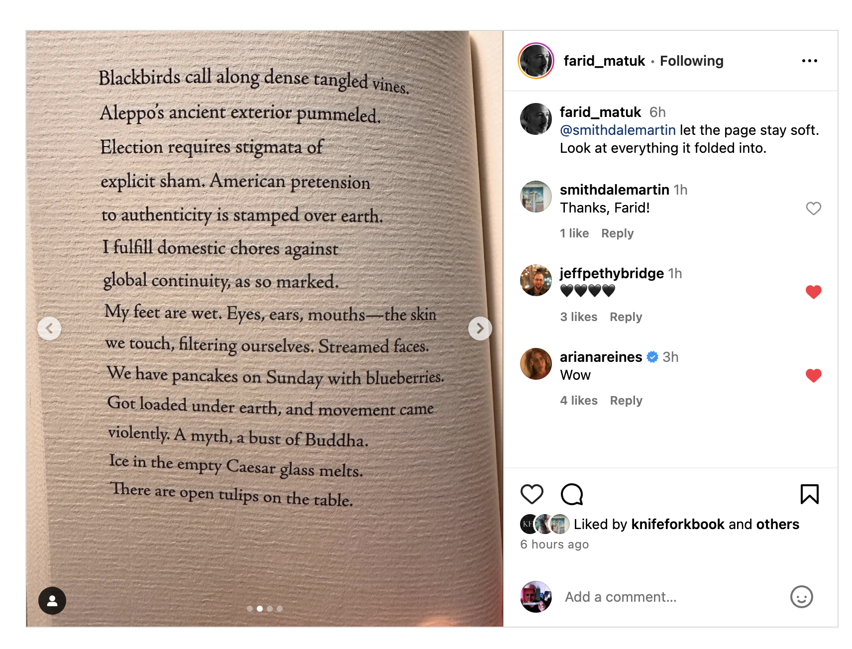 “let the page stay soft. Look at everything folded in to it.” FARID MATUK