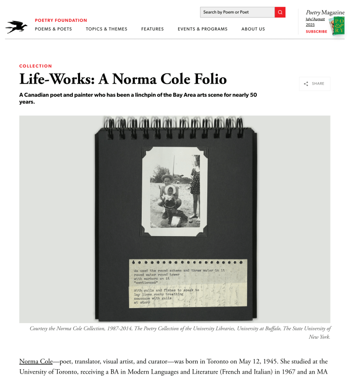 NEW NORMA COLE FOLIO created by Dale Martin Smith at The Poetry Foundation